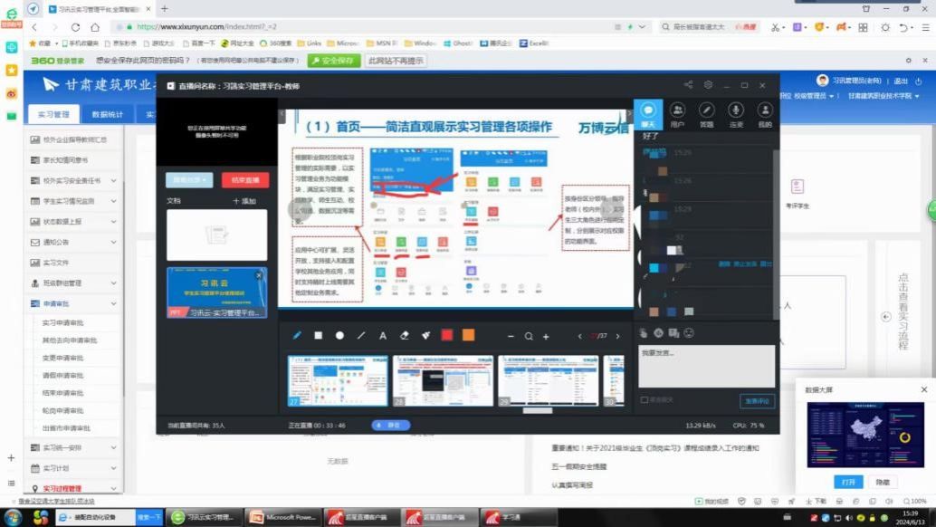 为了提高实习管理效率,充分利用实习管理平台功能,6月13日我处组织2022级岗位实习学生、指导老师、管理老师、班主任共计935人,进行了实习管理平台使用操作培训。同时会后将平台使用操作视频分别发送给各系实习管理教师并上传平台,方便未参与培训的学生及教师随时进行学习。通过本次培训,各平台相关使用人员进一步掌握和熟悉了平台各模块的功能与操作方法,进而会进一步提升平台的使用效率,推进学院学生岗位实习管理水平的提升。