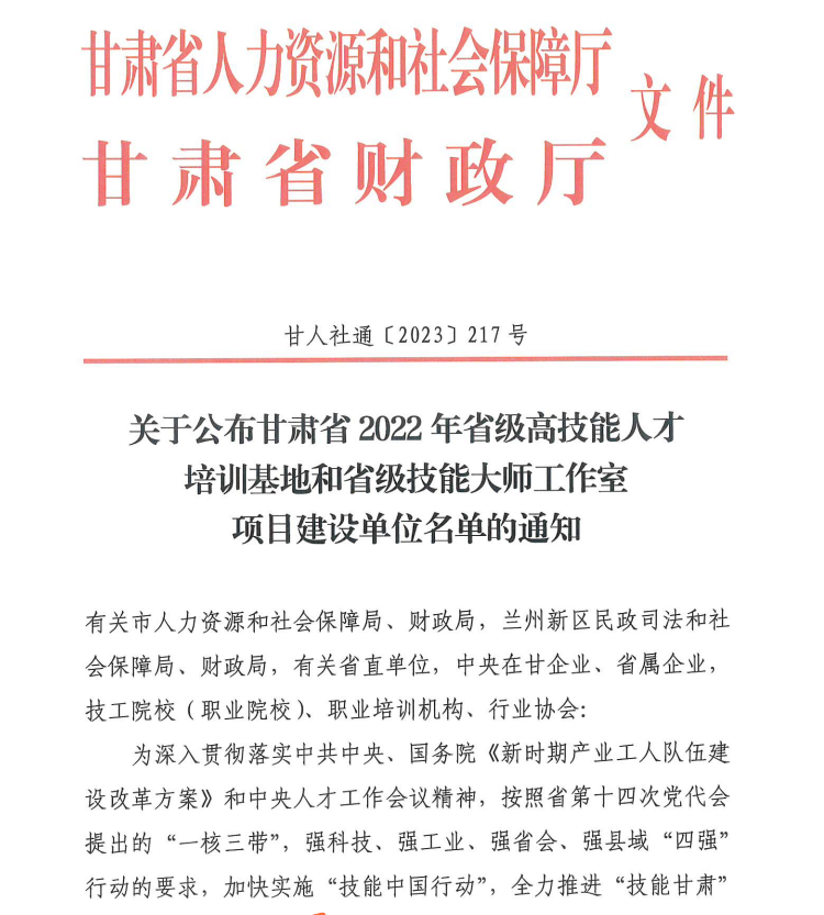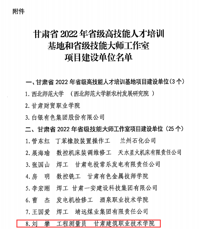 7.刘攀同志成功申报甘肃省2022年省级技能大师工作室项目建设单位