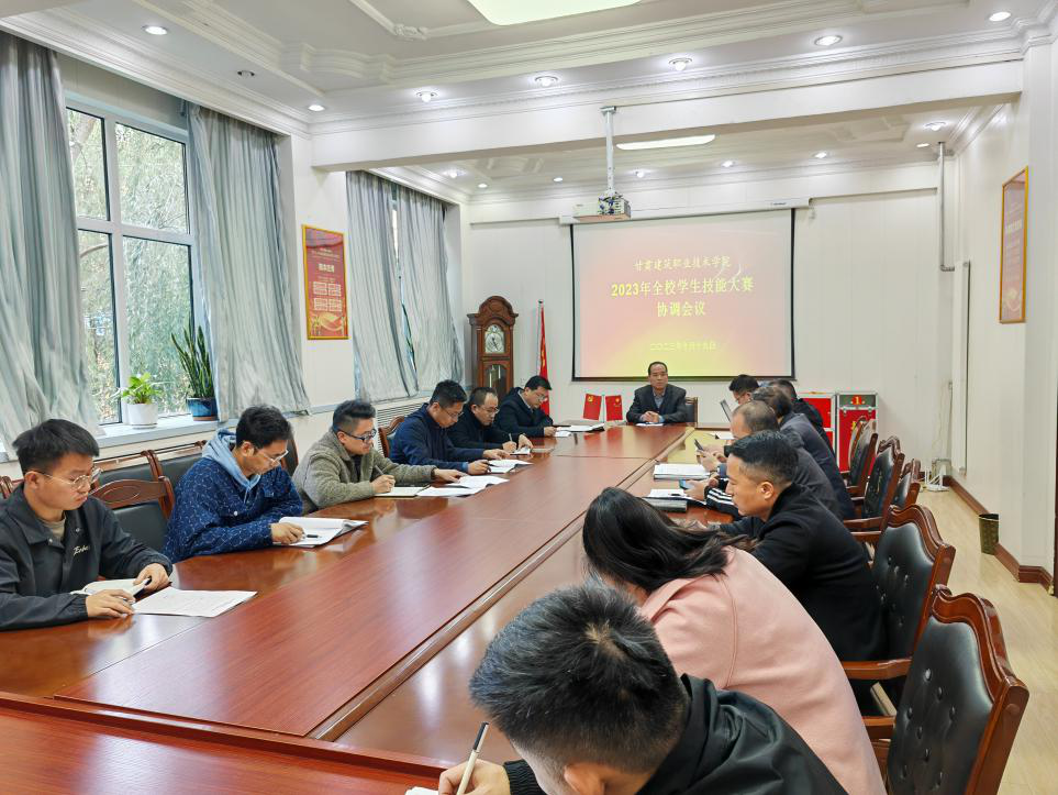 根据学院《关于举办2023年全校学生技能大赛的通知》文件精神,经大赛组委会研究决定,2023年全校学生技能大赛定于10月26日至29日举办。为了举办好本次大赛,展示学院技能教学成果,我处牵头于10月19日下午召开了2023年全校学生技能大赛协调会,印发了《甘肃建筑职业技术学院关于做好2023年全校学生技能大赛的工作安排》,要求各工作组要在大赛组委会的统一领导下,按照各工作组职责尽快开展工作,做好竞赛场地的准备、设备的调试、耗材的购买以及大赛期间的服务保障等工作,同时要加强沟通和协调,要将每一项工作落实到实处,确保高质量完成本次大赛的举办工作。
