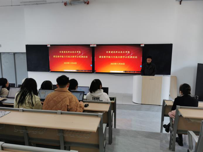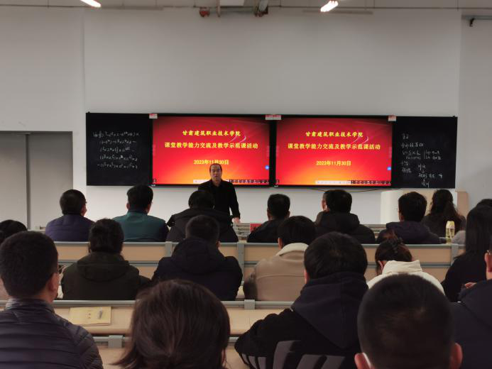 根据“青年教师课堂教学能力考核评比”活动的第二环节安排,我处于11月30日在第四阶梯教室组织开展了“甘肃建筑职业技术学院课堂教学能力交流及教学示范课”活动。党委委员、副院长李君宏、督导室、教师发展中心、教务处全体成员、两位优秀骨干教师和58位青年教师参加了此次活动。