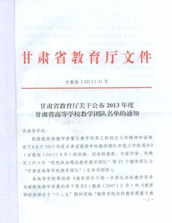 甘肃省教育厅关于公布2013年度甘肃省高等学校教学团队名单的通知